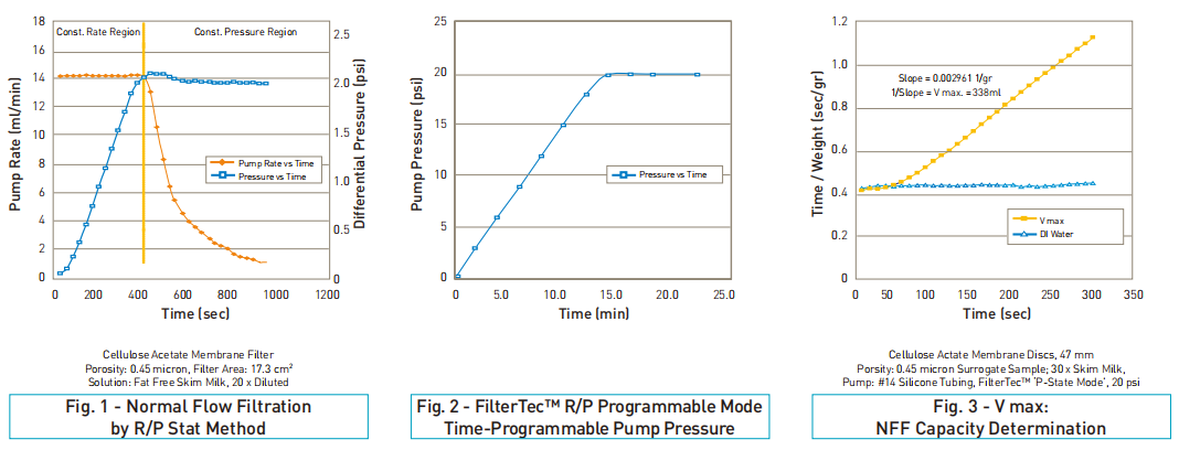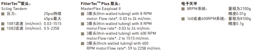 FilterTec®Plus具有與FilterTec®相同的過濾 性能研究功能,它可以連接3個NFF過濾器, 進(jìn)行濾膜尺寸的確定和過濾擴(kuò)大的實(shí)驗- FilterTec®Plus 比 FilterTec® 而言,具有同時控 制3個泵頭,與3個電子秤相連接的功能-該系 統(tǒng)可以允許三個相同的NNF過濾器在相同壓力 或相同流速的條件下進(jìn)行測試,通過三個過濾 器對比其過濾能力-FilterTec®Plus適用于過 濾器(NFF)制造商生產(chǎn)的各種形式過濾器。
